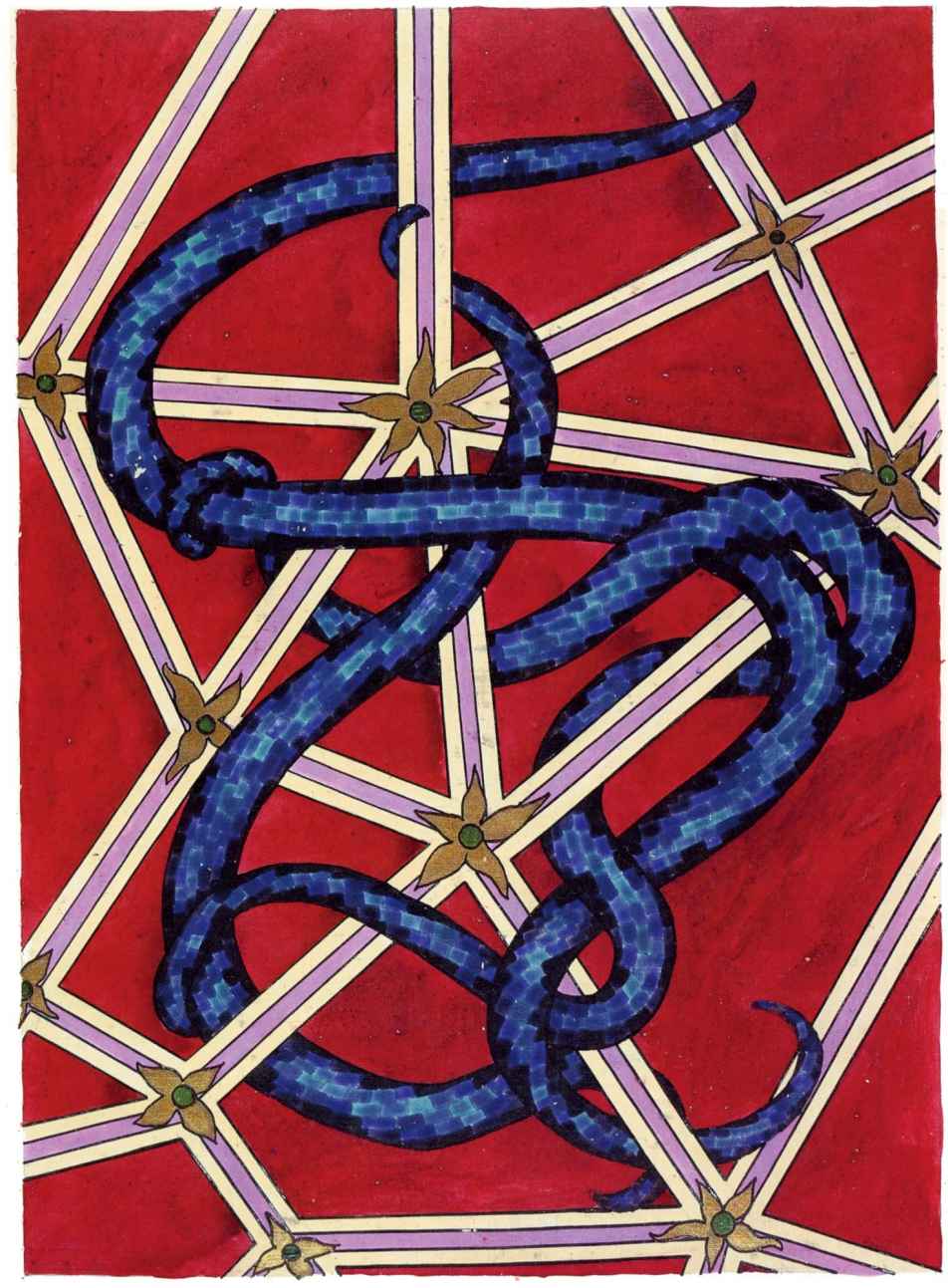 [8] 這張圖可能是緹娜·科勒在一次採訪中提到的一個意象,她在這次採訪中講到榮格對自己與艾瑪·榮格和託尼·伍爾夫之間關係的討論:“榮格曾經向我展示他正在畫的一幅畫,他說:‘看這三條交纏在一起的蛇,這就是我們三個人如何與這個問題進行鬥爭的。’我只能說這句話對我及其重要,即使這個現象稍縱即逝,在這裏,三個人都在接受命運,而不是單純爲了一己之利。”(金·納梅什採訪,1969,《R.D.萊昂論文集》,格拉斯哥大學,27頁)