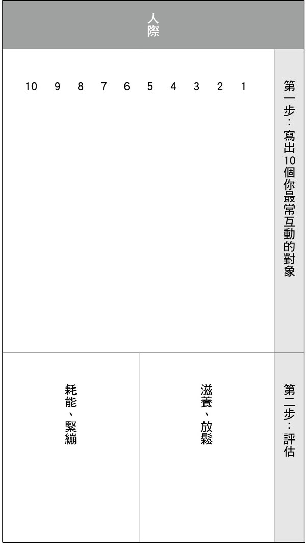 四、请相信,你就是自己身心健康的专家:无论是耗能或滋养,其实经常都是你有意/无意间,发展出来帮助自己在各方面过得更好的策略,所以我们不需要批评或否定自己的行动。相反地,我们应该回过头检视自己的生活,从习以为常的生活惯性中找出有利的行动,刻意重复这些行动,辨识出长期下来会对身心有害的行动,练习消除或偶一为之就好。